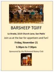 Friday, November 21, 5:30-7:30pm at La Strada, 2215 Church Lane, San Pablo