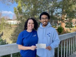 Richmond Rotary is pleased to invested in the Plant to Plate internship program. The program as described by Executive Director Kelli Barram mentors, empowers, and prepares high school students to build job and life skills through hands on training. The request was sponsored by Ruthie Abelson Olivas who is pictured presenting the check to Graduate Program Assistant Liam Africa.