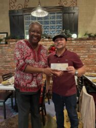 At our club meeting on Friday, Jan 7, Daniel Barth, Executive Director of SOS Richmond, presented recognition awards to Club Director Tom Herriman for our Housing First program and to Vicki Knudson, the “guardian angel of Rydin Road”, to honor our efforts in 2022 to assist our neighbors with a roof over their heads, regular hot meals and essential supplies.
